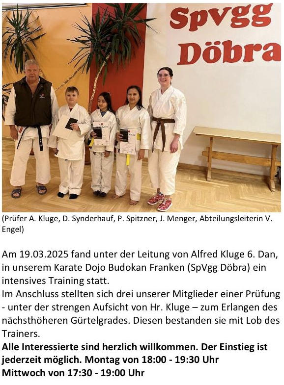 Im März 2025 erschien im Regionalblatt „Wir im Frankenwald“ ein Beitrag über unseren Karateverein. Wir freuen uns sehr über das Interesse und die positive Aufmerksamkeit für unsere Arbeit, unser Training und unser Engagement in der Region.